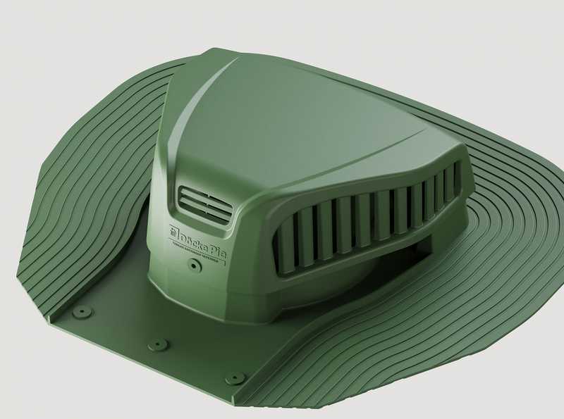 Цвет аэраторов идеально дополнит кровлю, выполненную в зеленых тонах. Дизайн точечных элементов вентиляции хорошо сочетается как с простыми графичными гонтами, так и с черепицей из коллекций со сложной формой лепестков.