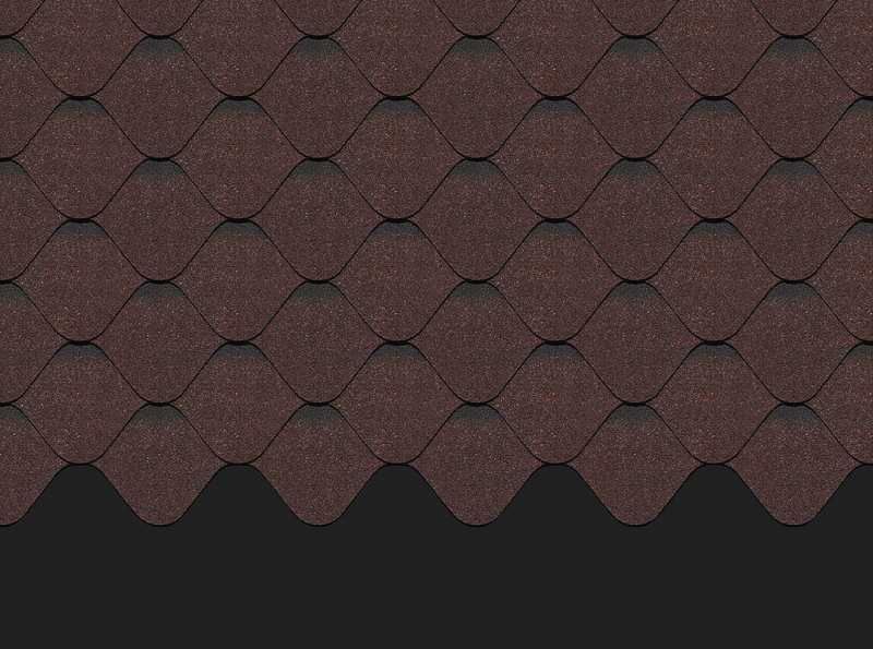 Глубокий шоколадный цвет эффектно подчеркивает оригинальную форму лепестков гонтов. Черепица с первого взгляда захватывает внимание. Она отлично сочетается с фасадами в сливочных оттенках, под сланец, песчаник, мрамор, клинкерный кирпич.