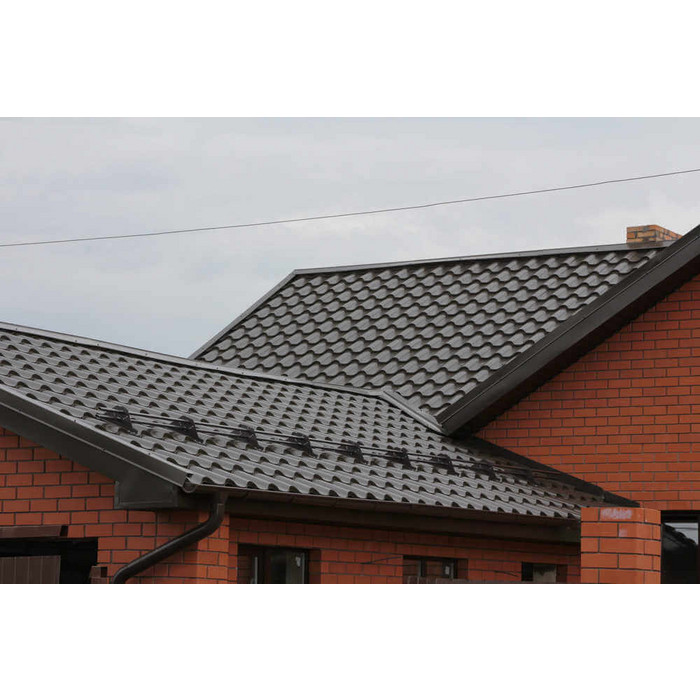Если вы ищете традиционную металлочерепицу для крупных скатов, обратите внимание на Ламонтерра® XL. Она характеризуется увеличенными размерами: длина ступенек — 400 мм, высота — 21 мм. Большие плавные волны акцентируют форму ската и сделают кровлю более оригинальной.