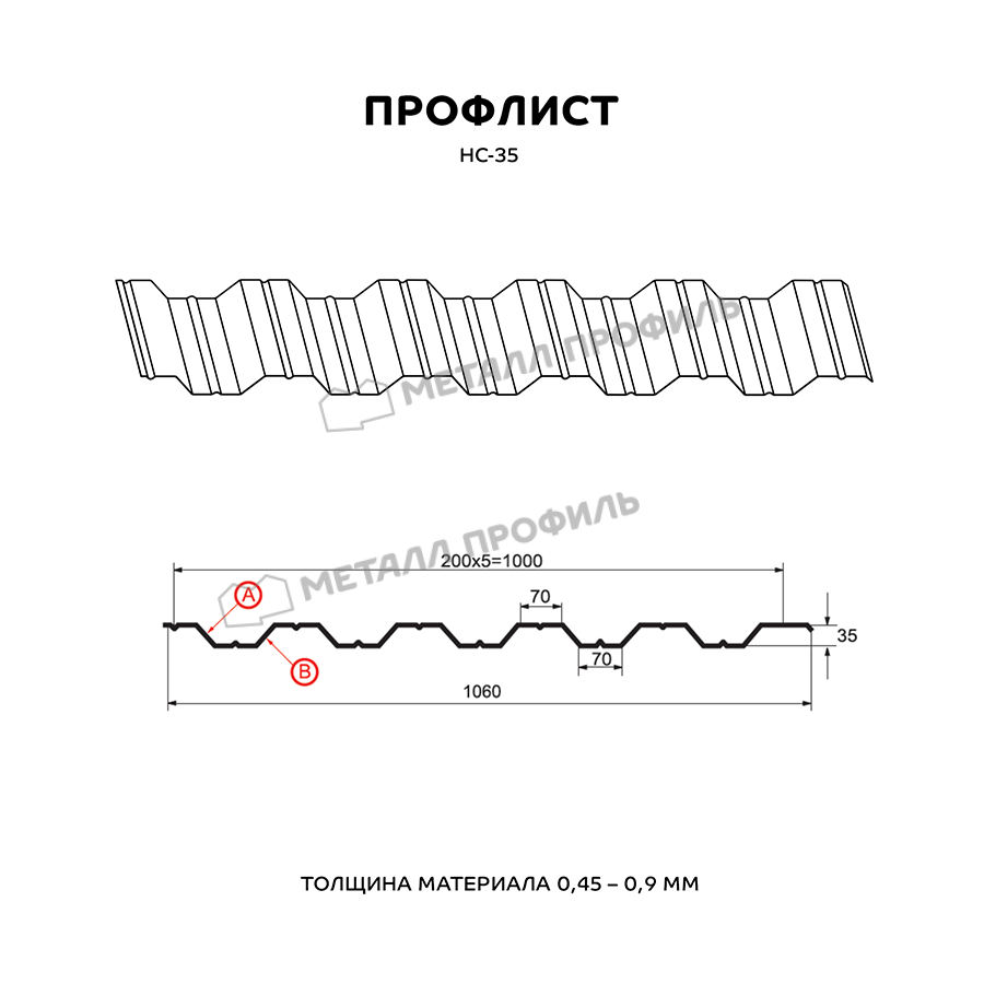 Профилированный лист НС-35x1000-B (ПЭ-01-3009-0,45) — популярный материал в Обнинске для монтажа забора. Изначально он представляет собой металлический оцинкованный лист с покрытием. Толщина металла с цинковым и декоративно-защитным покрытием составляет 0.45 мм.Проходя процедуру холодного проката, металл приобретает рисунок из повторяющихся волн. Такая конфигурация придает профилю несущую способность.